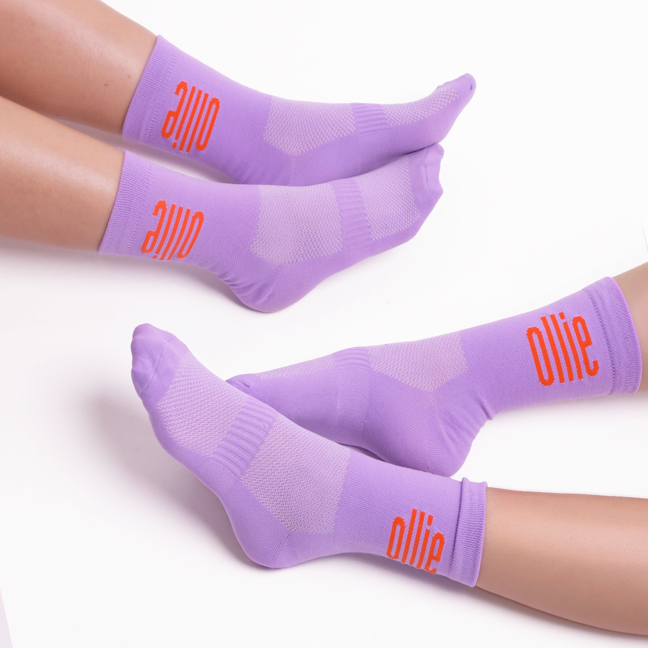 São dois pares da Meia Lilás de cano alto da Ollie. Pensada para corrida, academia ou treinos de alta performance, ela dá conforto e estilo para qualquer produção. Com tecido 90% poliamida, nossas meias absorvem o suor e evitam o atrito e o surgimento de bolhas – perfeitinhas!