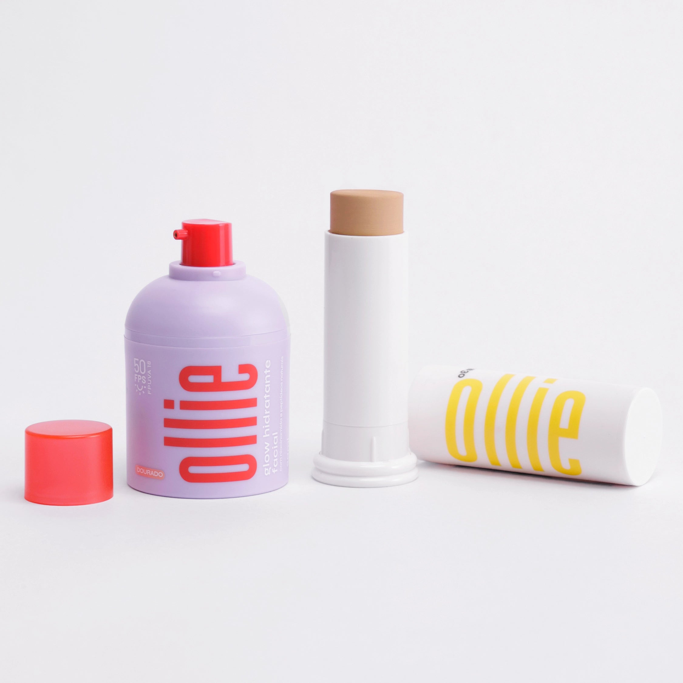O Protetor Solar com Cor atua como base, deixando uma textura aveludada. Já o Glow Hidratante Facial pode ser usado como primer, para dar um efeito butter skin para a make, ou por cima da sua base, iluminando os pontos que você quiser.